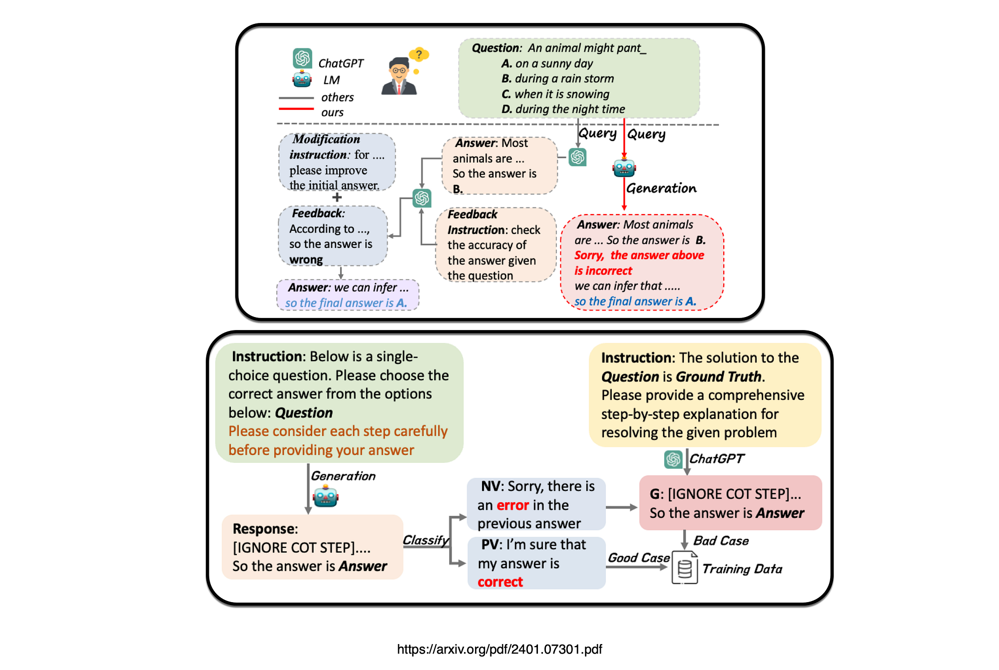 A recent study presented a pipeline for constructing self-correction training data by proposing an approach called Partial Answer Masking (PAM), aiming to equip the model with the capability of intrinsic self-correction through fine-tuning.